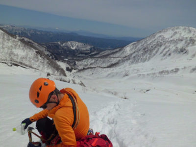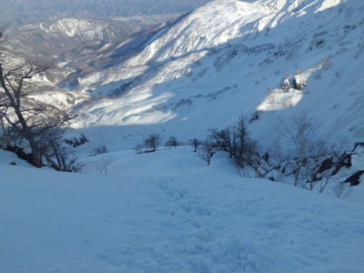 風は夜中かなり強く吹き、テントもバタバタとはためき続けてほとんど眠れません。翌朝検討して、強風のこともあり時間がかかりそうなので撤退することに。もっと上部でビバークできるよう、次回はゲートが開く時期に挑戦したいと思いました。