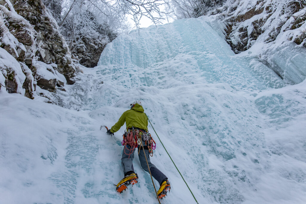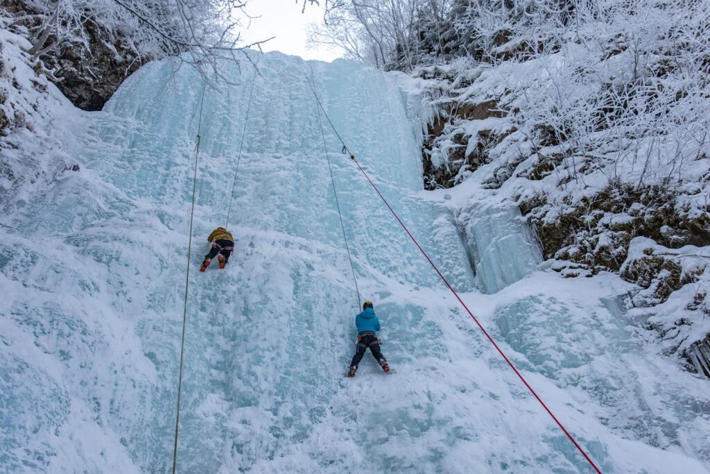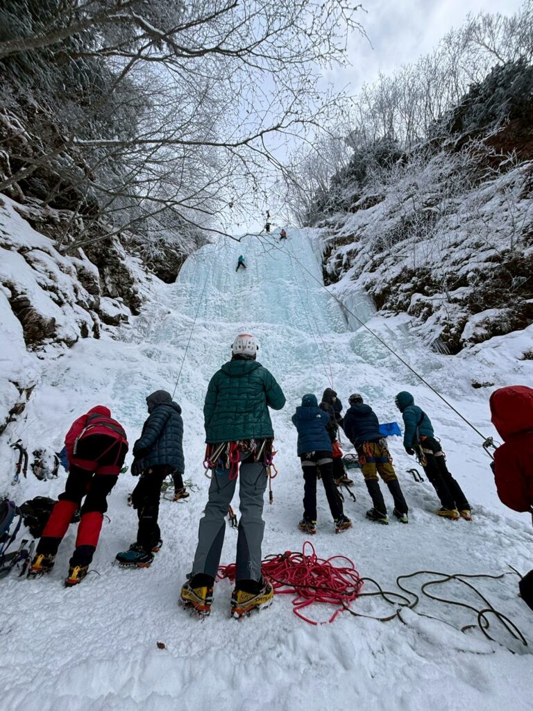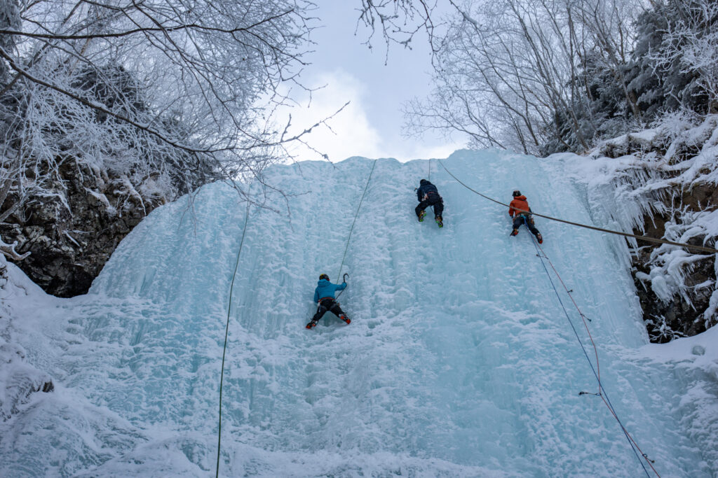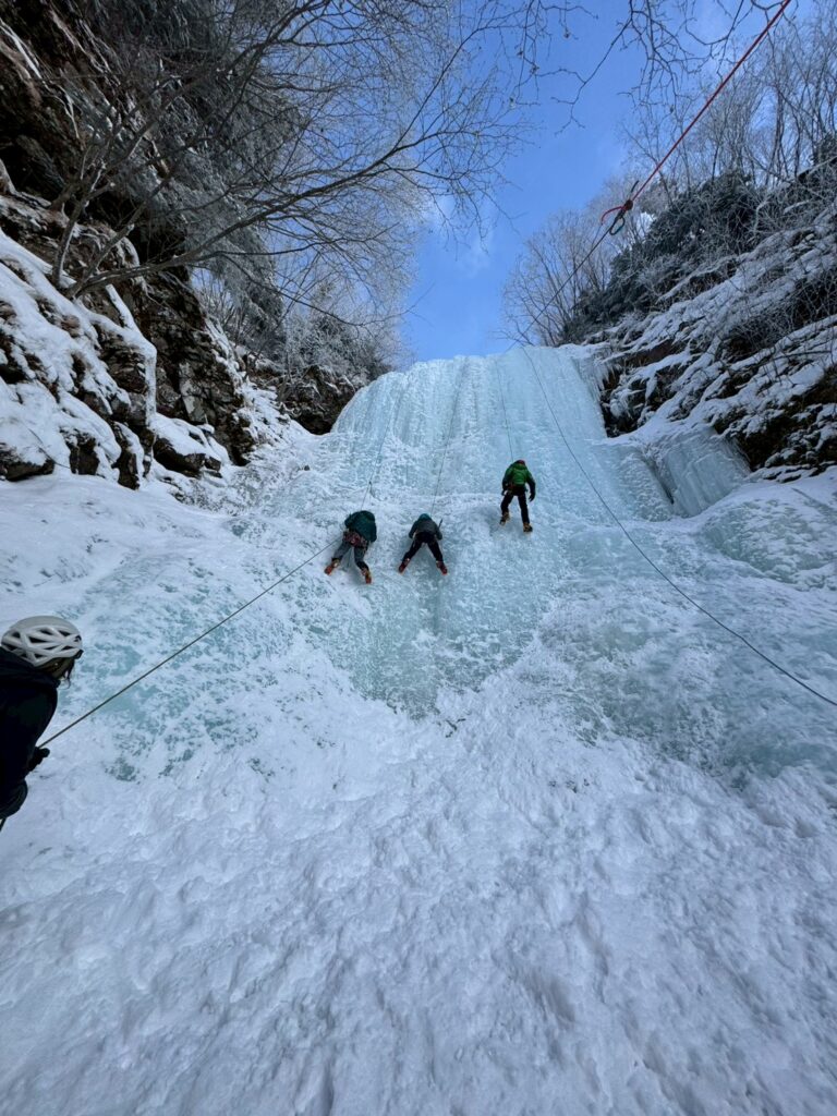 左側と中央を登れるようにしてもらい、私もチャレンジ。アイスクライミングは数回しかやったことが無く、2シーズンぶりなので動きがぎこちないです・・・